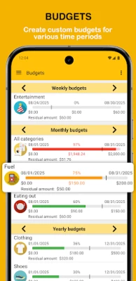 Uzturiet perfekcionētu kontroli pār saviem bankas kontiem un kredītkartēm, vērojot to atlikumus un tēriņu tendences laika gaitā ar pielāgojamām diagrammām. Fast Budget ļauj ātri un bez piepūles reģistrēt ienākumus un izdevumus, izmantojot ērtas veidnes un viedos logrīkus, kas paātrina katra darījuma ievadi. Ieplānojiet regulārus maksājumus ar atgādinājumiem, lai nekad vairs nepalaistu garām svarīgu termiņu. Izveidojiet personalizētus budžetus katrai kategorijai, nosakot to ilgumu un piesaistot vairākas kategorijas vienam budžetam, tādējādi vienmēr precīzi zinot, cik daudz naudas jums vēl ir pieejams.