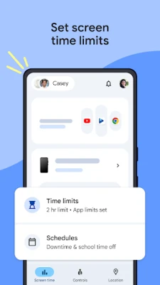Mūsdienu dinamiskajā digitālajā pasaulē vecākiem ir būtiski palīdzēt bērniem attīstīt veselīgus ekrāna laika paradumus. Family Link sniedz jums iespēju viegli un intuitīvi noteikt digitālā satura izmantošanas pamatnoteikumus, nodrošinot līdzsvarotu un atbildīgu piekļuvi viedierīcēm. Izmantojot Family Link, varat precīzi definēt dienas laika ierobežojumus, piemēram, samazināt piekļuvi mācību laikā un noteikt atpūtas periodus. Šī funkcija ļauj bērniem efektīvāk koncentrēties uz skolas darbu, vienlaikus atvēlot laiku izklaidēm, saglabājot optimālu līdzsvaru starp digitālo un reālo pasauli.