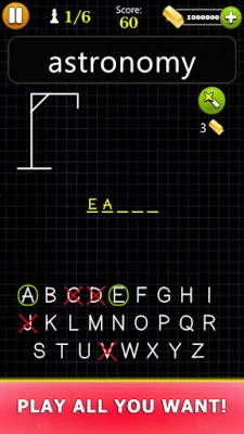 Iegremdējieties aizraujošā vārdu minēšanas piedzīvojumā ar Hangman - Word Game! Asiniet savu prātu un intuīciju, risinot neskaitāmas mīklas četros aizraujošos grūtības līmeņos, kas piemēroti gan iesācējiem, gan īstiem vārdu meistariem. Katra pareizā atbilde pakāpeniski atklāj apslēpto vārdu, tomēr esiet piesardzīgi – katra kļūda noved jūs soli tuvāk nelaimīgajām karātavām. Mazāks kļūdu skaits nodrošinās augstāku rezultātu. Sāciet spēlēt jau tagad un bagātiniet savu vārdu krājumu, vienlaikus uzlabojot vispārējās zināšanas stratēģiskā un izklaidējošā veidā.