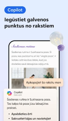 Pārlūkojiet gudrāk, radot un strādājot efektīvāk, pateicoties Microsoft Edge inovatīvajai integrācijai ar mākslīgo intelektu. Iebūvētais Copilot, kas darbināms ar jaunākās paaudzes GPT-4 modeli no OpenAI, palīdzēs jums atrast informāciju, sniedzot precīzas un apkopotas atbildes, kā arī lapu kopsavilkumus. Atraisiet savu radošumu ar DALL-E 3, pārvēršot teksta aprakstus vizuālos attēlos. Vai nepieciešams uzlabot rakstīto? Copilot var pārvērst jūsu idejas pulētā tekstā, ietaupot vērtīgu laiku. Izmantojiet funkciju "Lasīt skaļi", lai ērti klausītos saturu dažādās valodās un dabiskās balsīs, kamēr veicat citus uzdevumus.